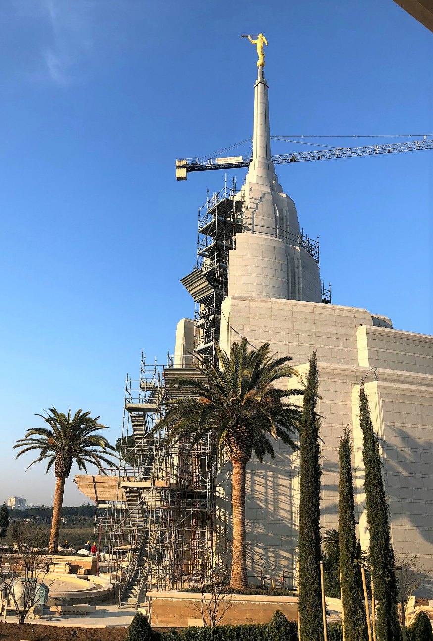 El ángel Moroni fue colocado en la parte superior del Templo de Roma, Italia, el 27 de marzo de 2017.