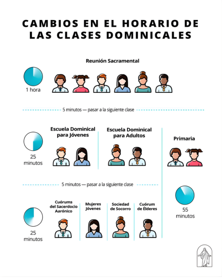 Uno de los cambios principales tiene que ver con la organización de las clases dominicales. Actualmente, la Escuela Dominical y las reuniones de quórumes y clases se alternan cada semana. Sin embargo, a partir de septiembre de 2026, todas estas clases se realizarán cada domingo. De esta manera, el aprendizaje será más constante y estará más conectado con el estudio personal y familiar.