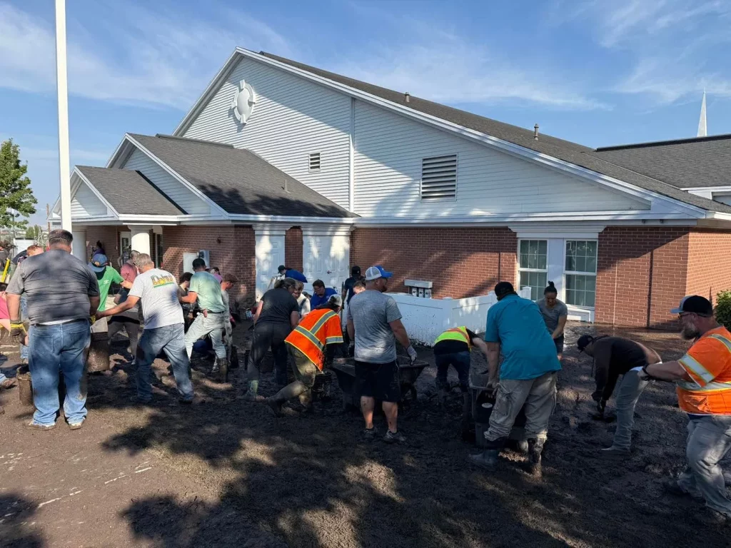 “Es difícil de describir… había lodo por todas partes”, comentó Laura Thompson, una de las voluntarias. “Decían que llegaba hasta cuatro pies. Yo mido cinco, y era casi hasta aquí”.