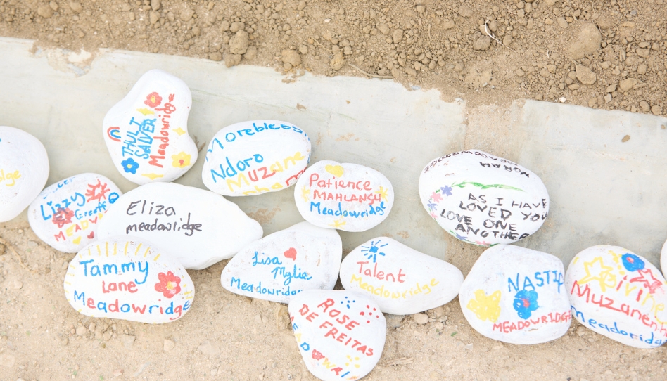 Durante la ceremonia, los niños de la Primaria colocaron pequeñas piedras blancas con sus nombres como símbolo de fe y compromiso.