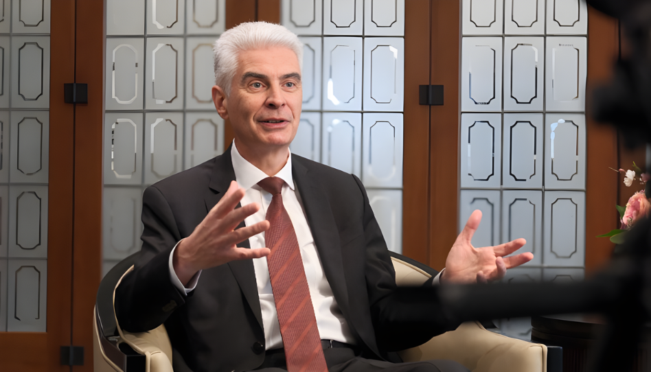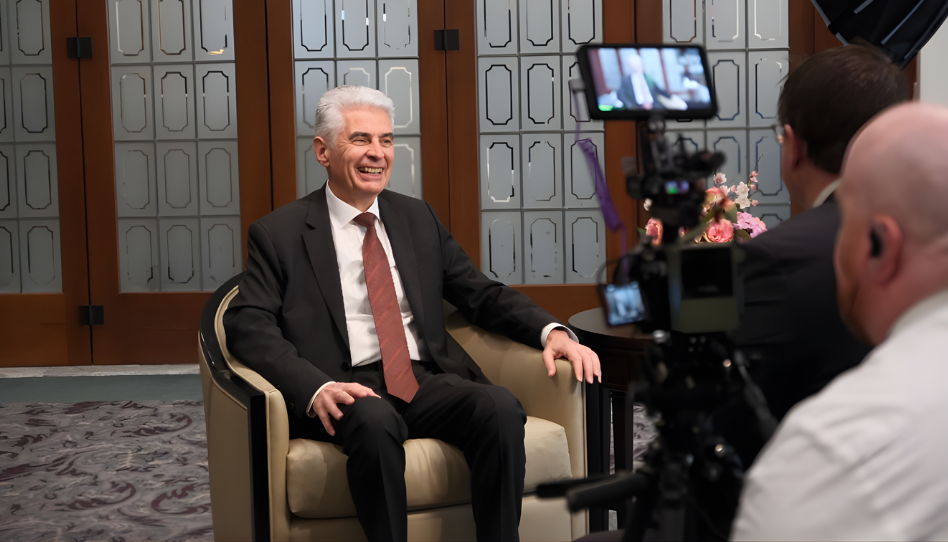 El élder Gérald Caussé conversa con miembros de los medios de comunicación. Imagen: La Iglesia de Jesucristo de los Santos de los Últimos Días