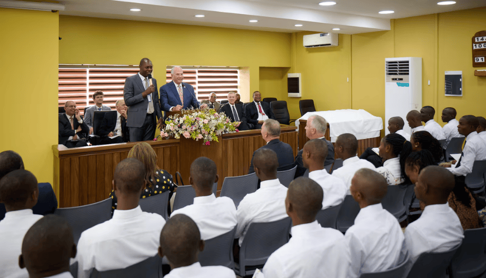 En medio de una gira ministerial por África Oriental y Central, el élder Ronald A. Rasband, del Cuórum de los Doce Apóstoles, dedicó el nuevo Centro de Capacitación Misional (CCM) en Kinshasa, República Democrática del Congo, el domingo 2 de noviembre de 2025.