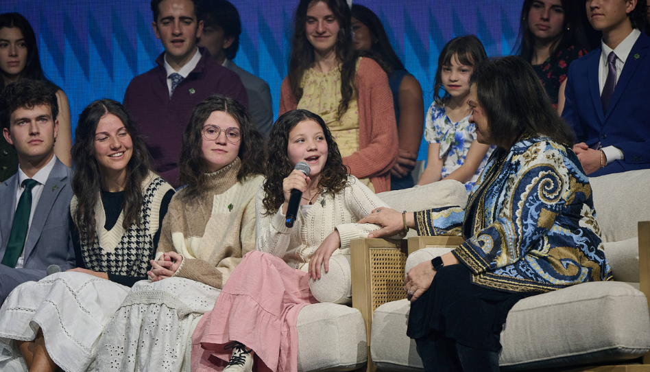 La presentación incluyó un video sobre los antepasados del élder Rasband en Inglaterra, una conversación en el escenario con algunos de sus nietos sobre genealogía y servicio en el templo, y una dramatización que relató parte de la historia familiar de la hermana Rasband.