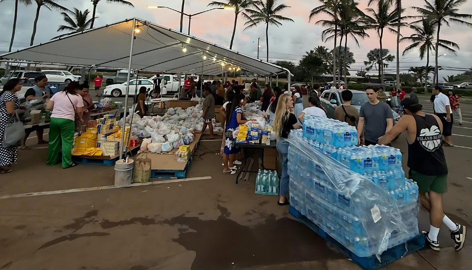 Los estacionamientos de las capillas se transformaron en centros de distribución de agua, alimentos y combustible, brindando apoyo inmediato a quienes más lo necesitaban. Steven Nawahine, líder local de la Iglesia de Jesucristo en Laie, resumió este esfuerzo con palabras poderosas: