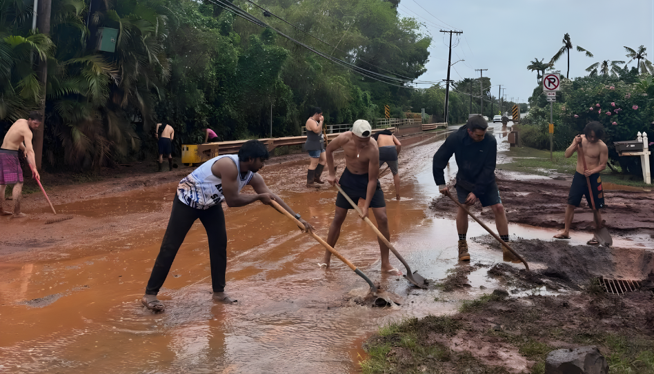 El Centro Cultural Polinesio también desempeñó un papel clave en la respuesta. A pesar de que muchos de sus propios empleados fueron afectados por las inundaciones, el centro organizó rápidamente la distribución de comidas calientes y artículos esenciales.