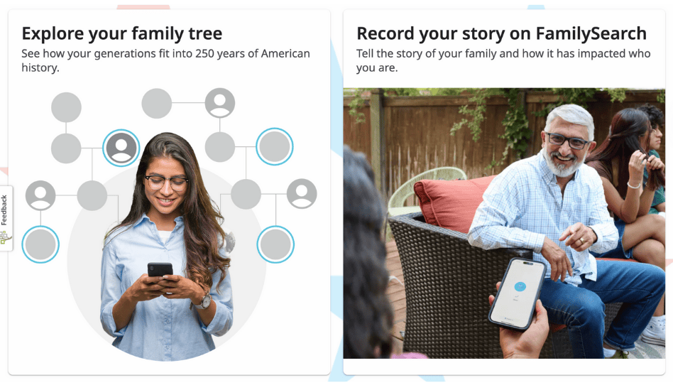 La nueva página ofrece herramientas para explorar el Árbol Familiar de FamilySearch, registrar historias personales, nominar a un “héroe estadounidense” y recibir ayuda en centros especializados de historia familiar.