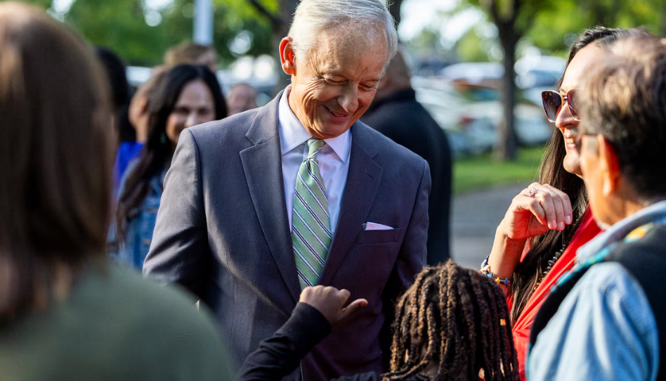 El élder Michael A. Dunn, primer consejero del Área Suroeste de la Iglesia, participó en la ceremonia y recordó que en una semana marcada por divisiones y corazones cargados, lo esencial era reunirse para compartir la fe en Dios.