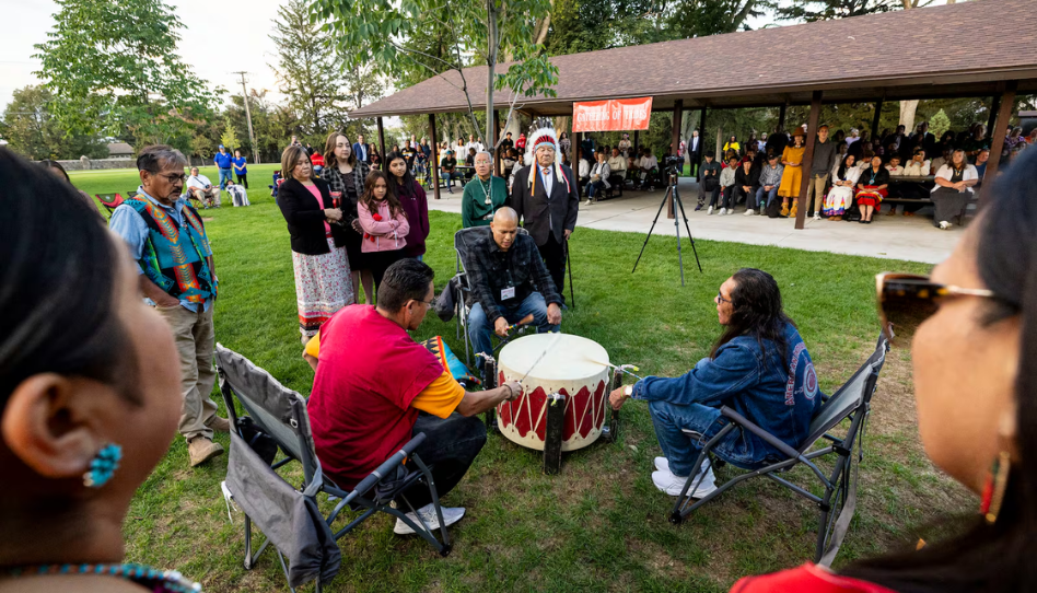 Cindy Quinney, directora ejecutiva de Gathering of Tribes y miembro inscrita de la Nación Cree de Onion Lake, explicó durante la ceremonia de amanecer: