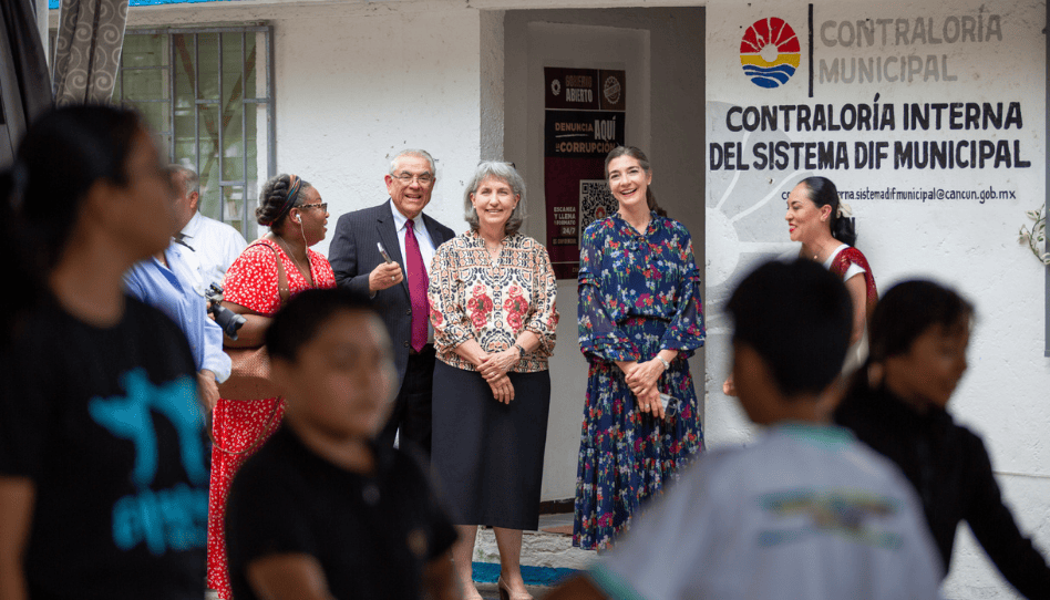 El 20 de septiembre de 2025, tres líderes de las presidencias generales de La Iglesia de Jesucristo de los Santos de los Últimos Días se unieron a miembros locales en Cancún, Quintana Roo, México, para realizar una donación de 300 mochilas de emergencia al Sistema para el Desarrollo Integral de la Familia (DIF) del municipio de Benito Juárez.