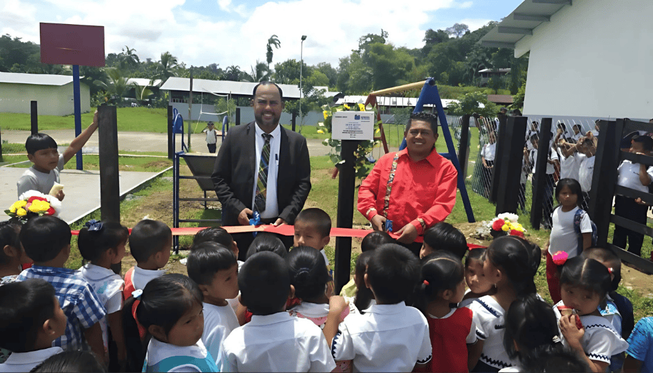 En la apartada comunidad de Quebrada Cayuco, en la provincia de Bocas del Toro, Panamá, la Iglesia de Jesucristo en colaboración con la organización School The World, entregó dos nuevas aulas escolares y un parque recreativo al centro educativo local.