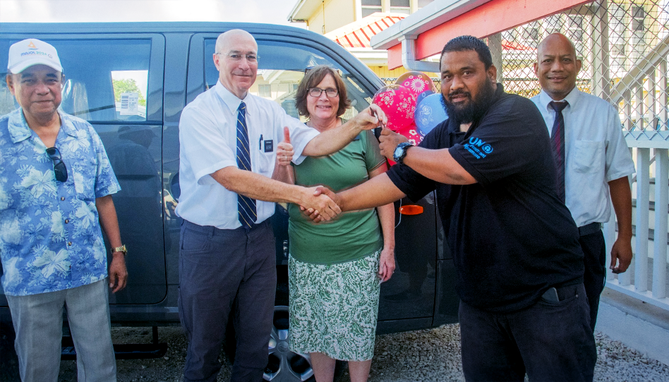 Entre las ayudas más recientes se incluyen productos de higiene personal para niñas desde sexto grado, equipamiento deportivo para escuelas en todo el país y la construcción de una cancha recreativa en el Centro Educativo para Personas con Limitaciones Auditivas en Majuro.