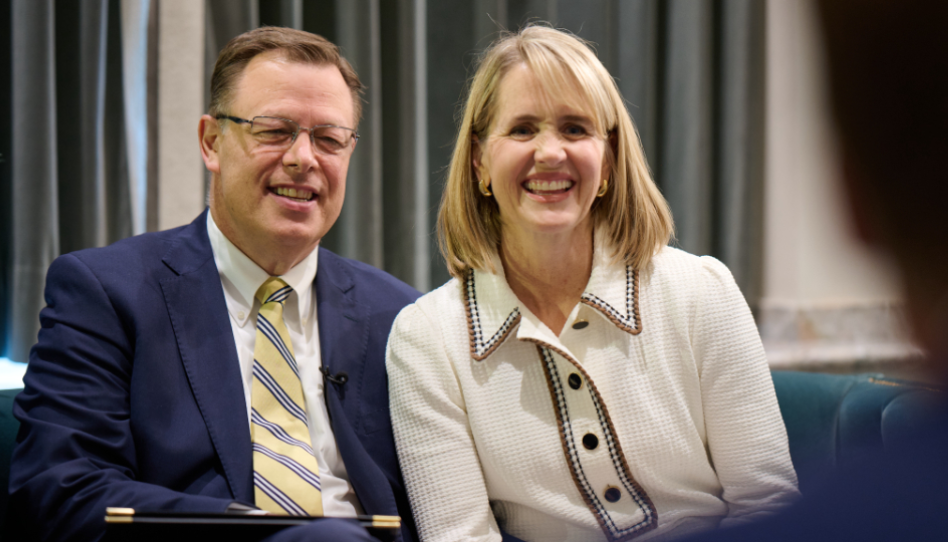 Su esposa, Christine Gilbert, estuvo a su lado durante la rueda de prensa. El apóstol reconoció públicamente el apoyo constante de ella a lo largo de su vida.