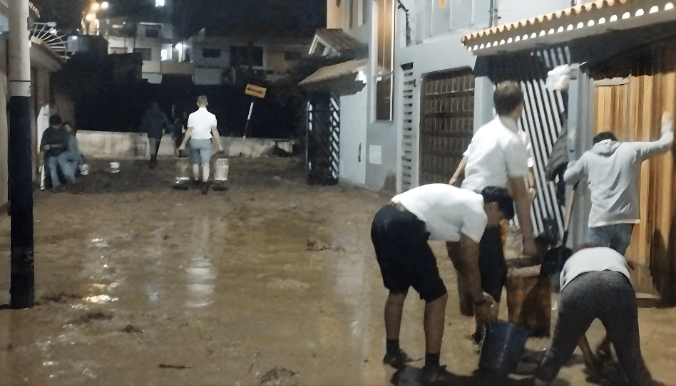 Varios de ellos han salido a colaborar directamente con las familias afectadas, retirando lodo de las viviendas, limpiando espacios dañados y ayudando a recuperar lo que se pueda salvar.