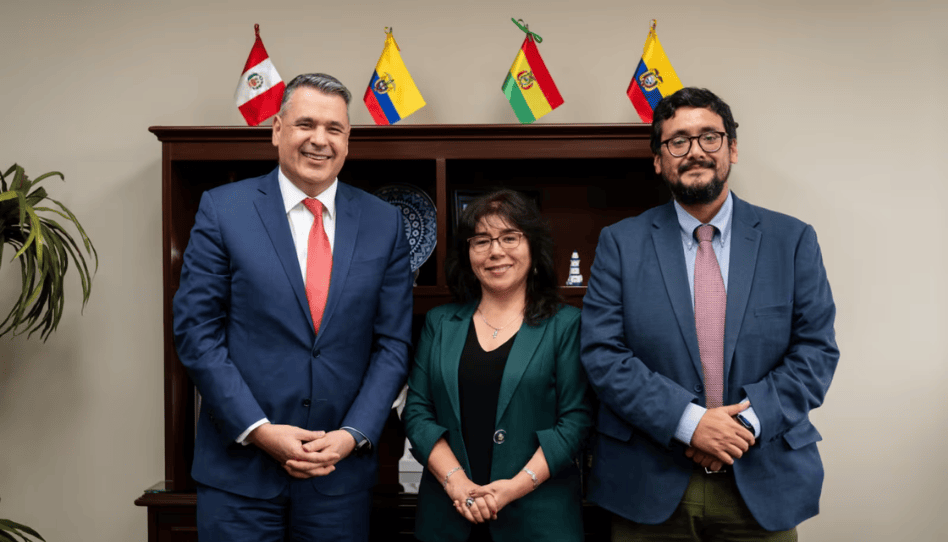 El élder Juan Pablo Villar, Setenta Autoridad General y presidente del Área Sudamérica Noroeste de la Iglesia, a la izquierda, posa para una fotografía con funcionarios del gobierno peruano en Perú el 3 de febrero de 2026. Imagen: La Iglesia de Jesucristo de los Santos de los Últimos Días