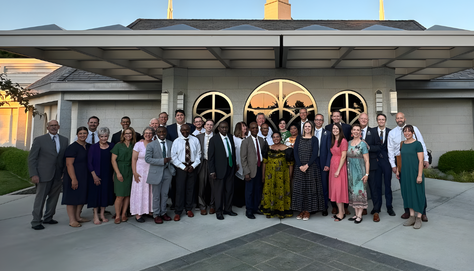 El primer grupo de investiduras en la Rama Treasure Valley (swahili) incluye a Denis y Esther Akulu en el Templo de Boise, Idaho, el 11 de junio de 2024. Imagen: Blake Bybee