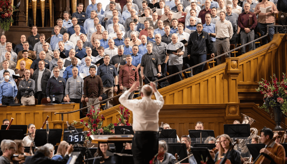 Frente al coro y la orquesta, compartió su testimonio de Jesucristo y cómo la música marcó su vida desde niño en Mississippi. Recordó que cada domingo su familia escuchaba música cristiana, incluyendo las transmisiones del coro, y cómo esas experiencias le enseñaron una verdad que lo acompañó siempre.