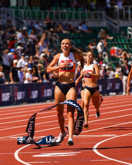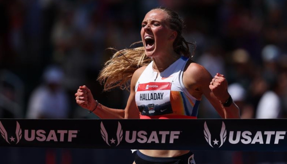 Horas después, en la misma distancia pero en la rama femenina, otra exBYU hizo historia. Lexy Halladay-Lowry, originaria de Meridian, Idaho, vivió uno de los momentos más especiales de su joven carrera. En una de sus primeras competencias como profesional, detuvo el cronómetro en 9:09.14 para quedarse con el título nacional.