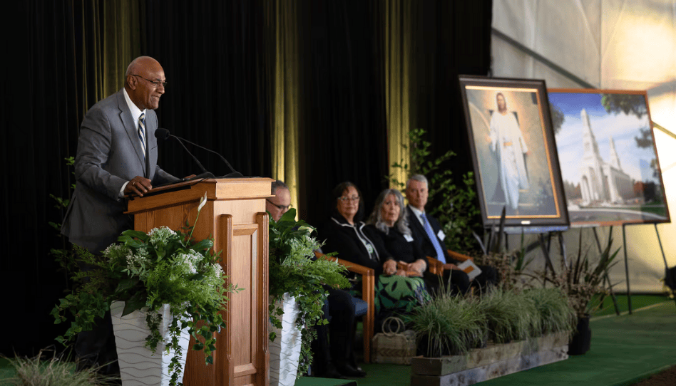 El élder Taniela B. Wakolo, Setenta Autoridad General y primer consejero en la presidencia del Área Pacífica de la Iglesia, presidió el evento que reunió a más de 500 personas y fue transmitido en línea.