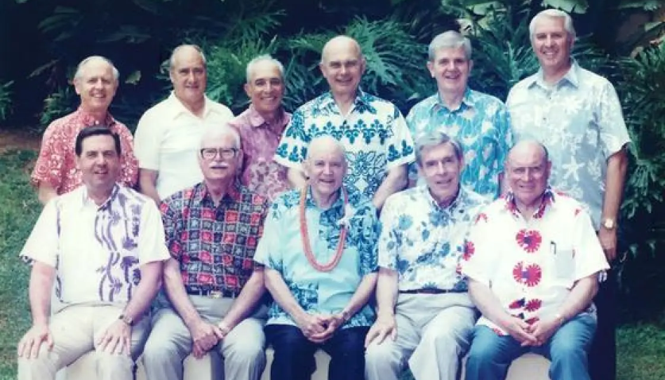 En esta imagen, el presidente Dallin H. Oaks aparece junto al élder Jeffrey R. Holland y otros líderes. Más allá de las responsabilidades, los une una amistad en años de servicio y dedicación compartida al evangelio.