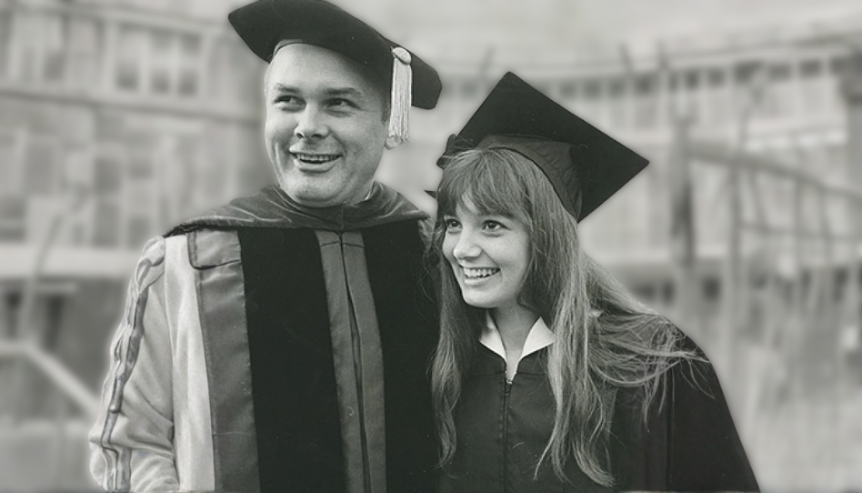 En esta imagen, Dallin H. Oaks celebra la graduación de una de sus hijas. Su amor por el aprendizaje y la educación fue una herencia que transmitió dentro y fuera del hogar.