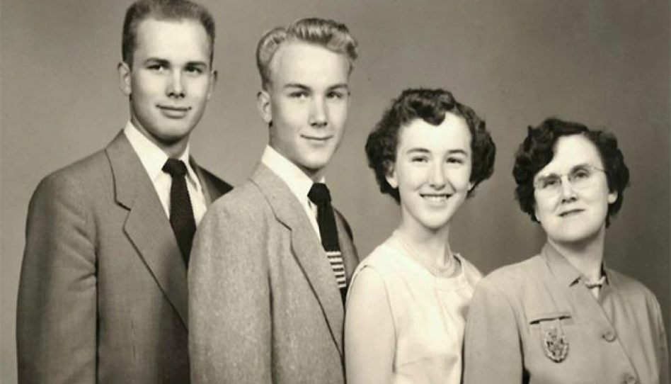 Tras la muerte de su padre, su madre Stella sostuvo el hogar con fortaleza. En esta imagen, Dallin H. Oaks se encuentra junto a sus hermanos, Merrill y Evelyn, y su madre.