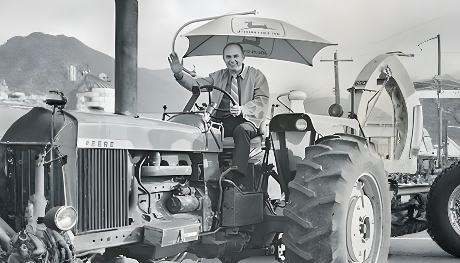 En esta imagen, el presidente Dallin H. Oaks conduce un tractor durante una actividad de servicio. Su disposición para participar activamente refleja su creencia de que el liderazgo se demuestra con acción, no solo con palabras.