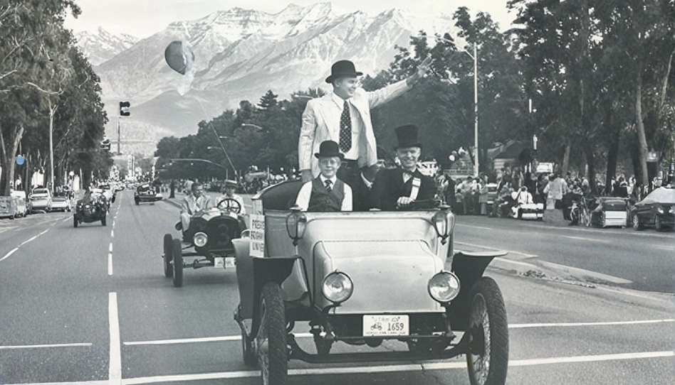 En esta imagen, Dallin H. Oaks participa en un desfile local, saludando con una sonrisa a la multitud.