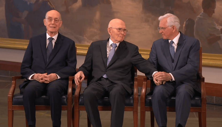 En esta fotografía se presenta la nueva Primera Presidencia de la Iglesia, presidida por Dallin H. Oaks. Su mirada serena y su unión con los consejeros reflejan continuidad, fe y el compromiso de guiar con sabiduría y servicio.