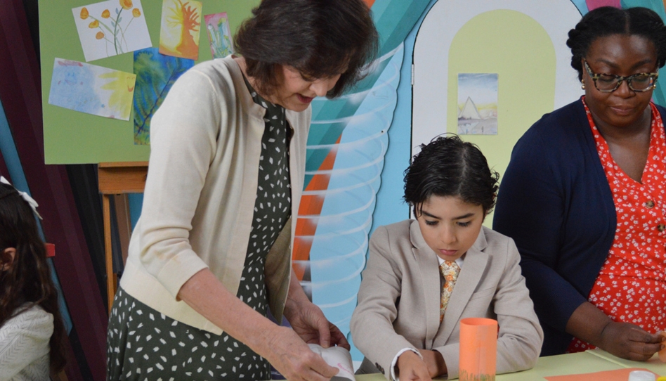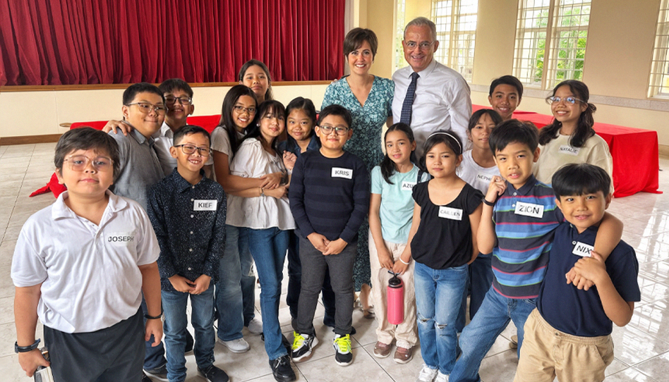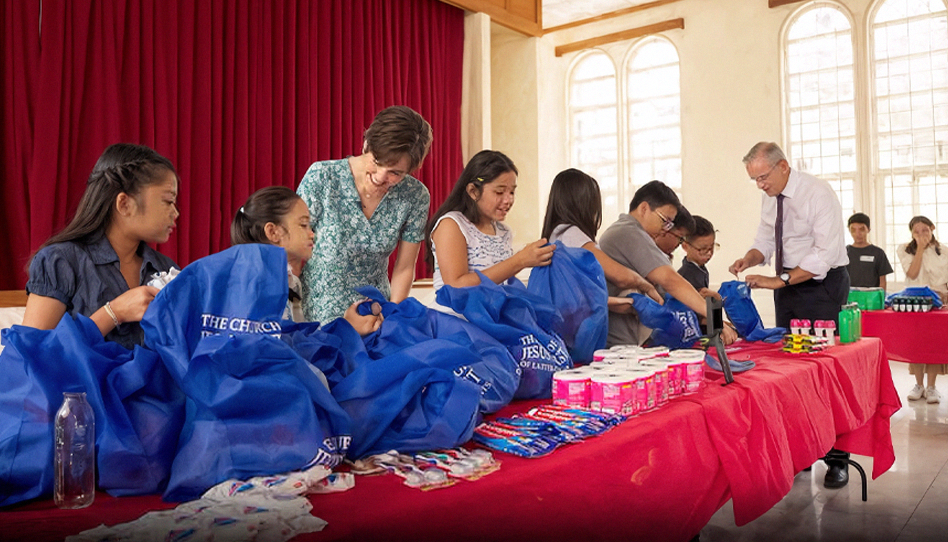 Durante una visita a la Primaria en Filipinas, se unieron a los niños en la preparación de kits de higiene para otros pequeños de la zona.