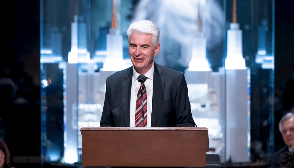 En medio de la ceremonia, el élder Gérald Caussé, nuevo miembro del Cuórum de los Doce Apóstoles, se paró y compartió un poderoso mensaje: