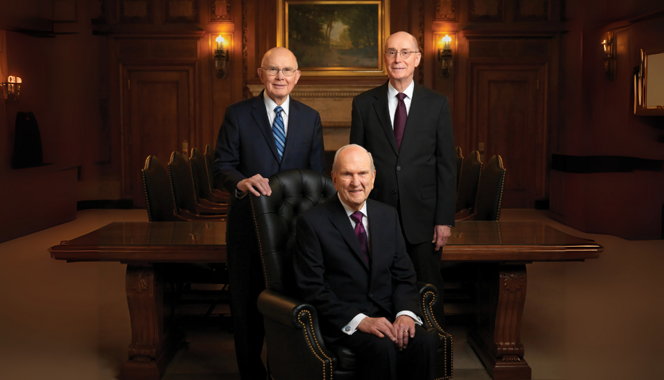 Esta fue la primera foto que la Iglesia de Jesucristo publicó de la Primera Presidencia con el presidente Nelson como profeta, el presidente Dallin H. Oaks como primer consejero y el presidente Henry B. Eyring como segundo consejero.