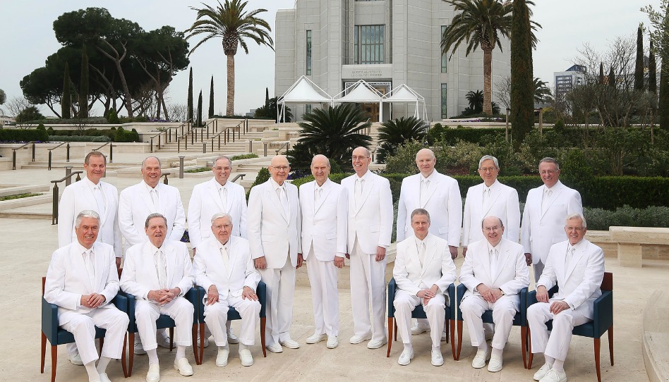 Durante las ceremonias dedicatorias para el primer templo de La Iglesia de Jesucristo de los Santos de los Últimos Días en Roma, Italia, todos los miembros de la Primera Presidencia y el Cuórum de los Doce Apóstoles (15 en total) se reunieron para una foto de grupo histórica.