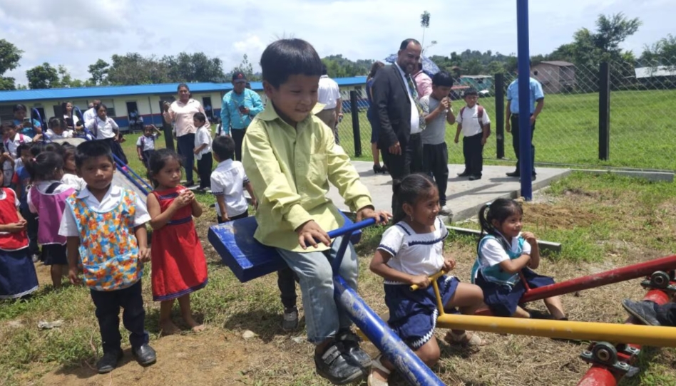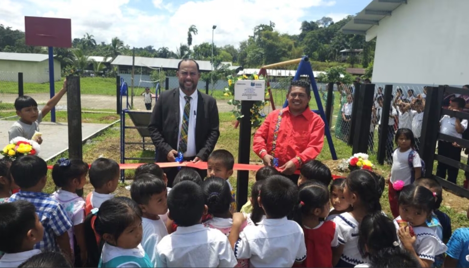 En la provincia de Bocas del Toro, Panamá, la Iglesia hizo entrega de dos aulas completamente equipadas y un parque al Centro Educativo Quebrada Cayuco.
