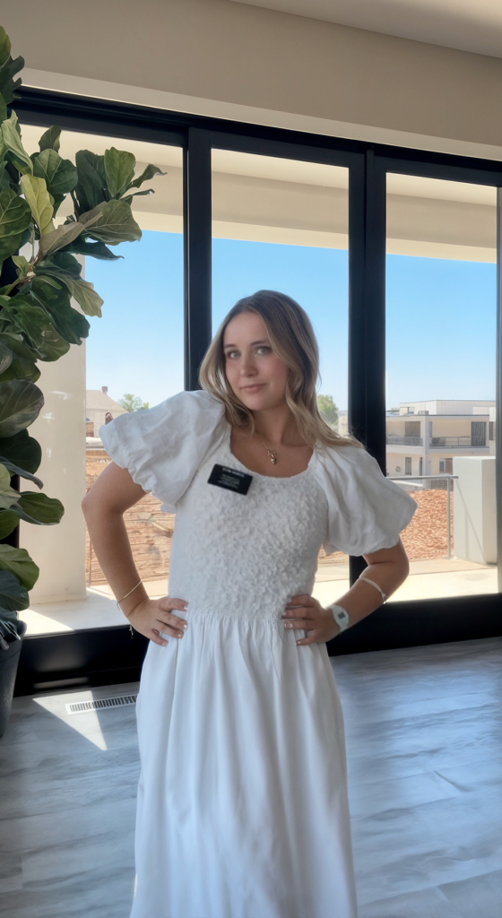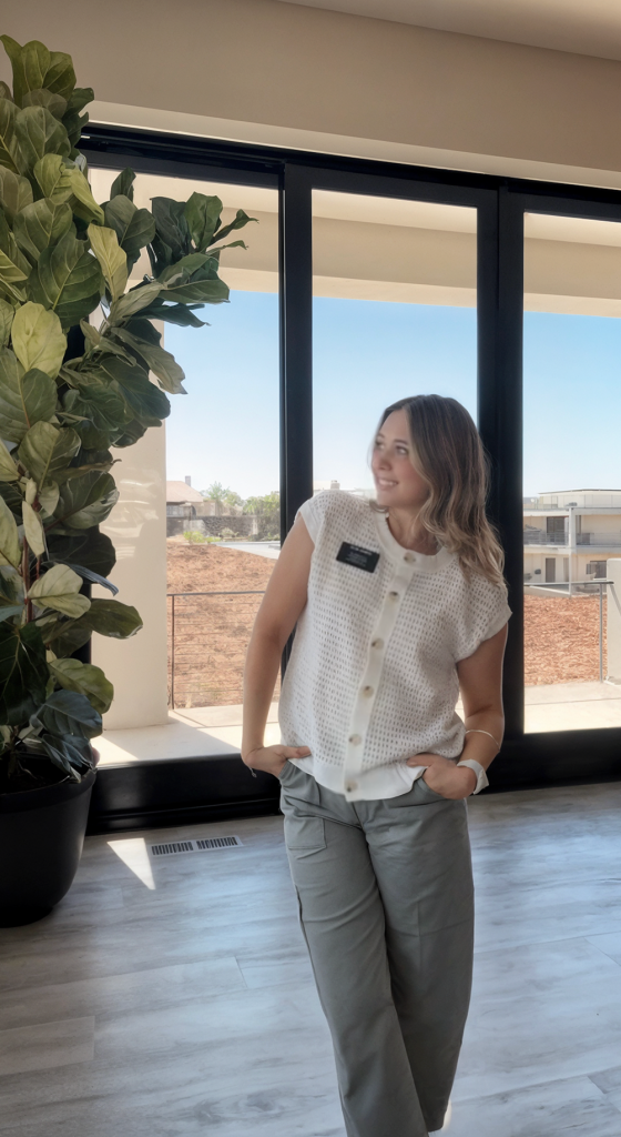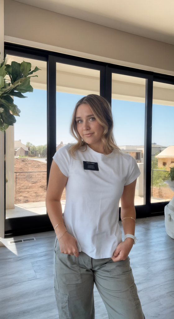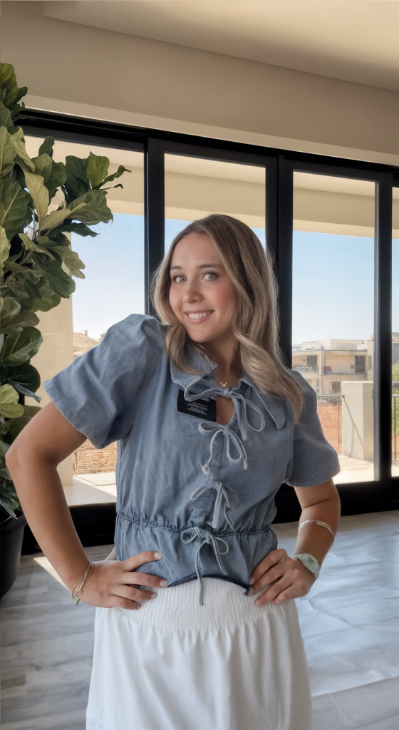 Combinación clara y fresca que transmite serenidad. Perfecta para entrevistas, charlas con miembros o actividades en climas cálidos.