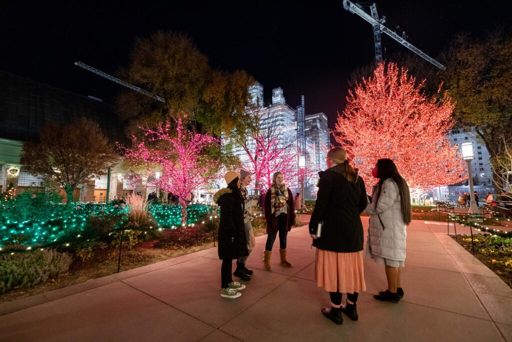 A pesar de que la Manzana del Templo se encuentra bajo renovaciones, nuevamente las luces navideñas adornan la sede de la Iglesia.