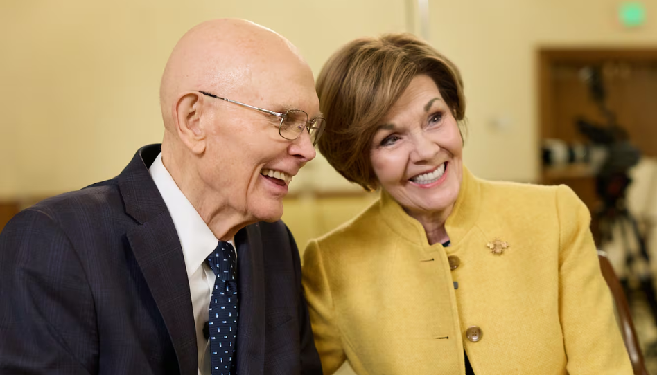 Presidente Oaks y su esposa juntos luego de una entrevista con la nueva Primera Presidencia. Imagen: Cody Bell, La Iglesia de Jesucristo de los Santos de los Últimos Días