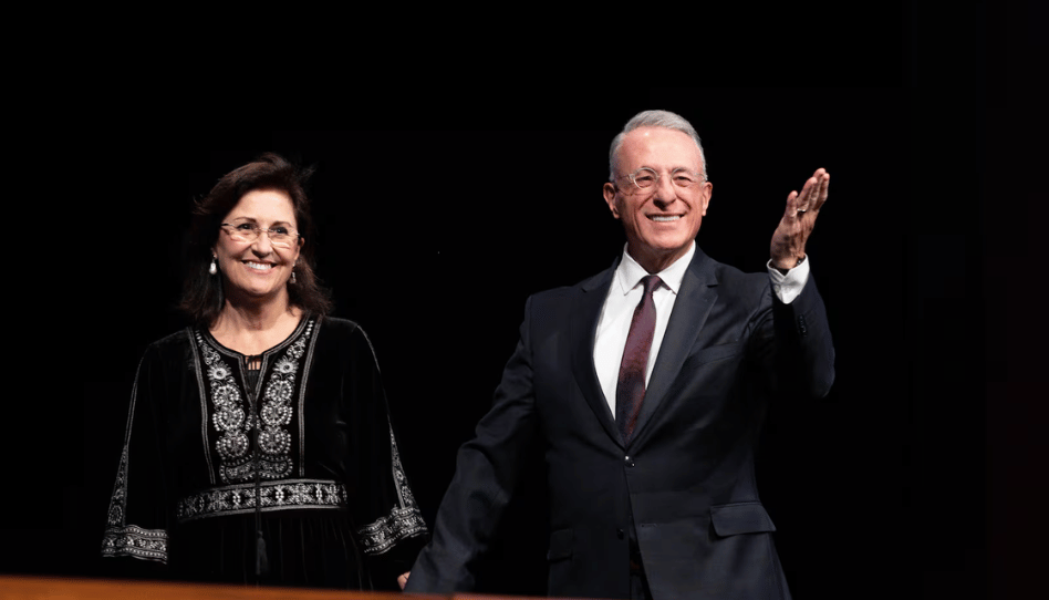 El élder Ulisses Soares, del Cuórum de los Doce Apóstoles, y su esposa, la hermana Rosana Soares, hablan durante un devocional de BYU-Idaho celebrado en el I-Center el domingo 27 de abril de 2025. Créditos: Lauren Dominguez. Imagen: BYU-Idaho.