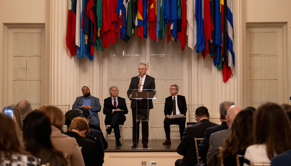 El élder Ulisses Soares, del Cuórum de los Doce Apóstoles, habla en la recepción inaugural de la Cumbre Internacional de Libertad Religiosa 2025, celebrada en la Casa de las Américas en Washington, D.C., el lunes 3 de febrero de 2025. Imagen: La Iglesia de Jesucristo de los Santos de los Últimos Días