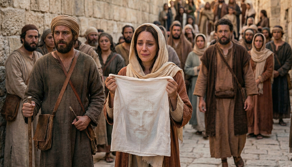 Verónica no aparece mencionada en los Evangelios canónicos. Y aun así, su figura ha sobrevivido siglos. Según la tradición, fue la mujer que se abrió paso entre la multitud para limpiar el rostro ensangrentado de Jesús, dejando su imagen grabada en el paño.